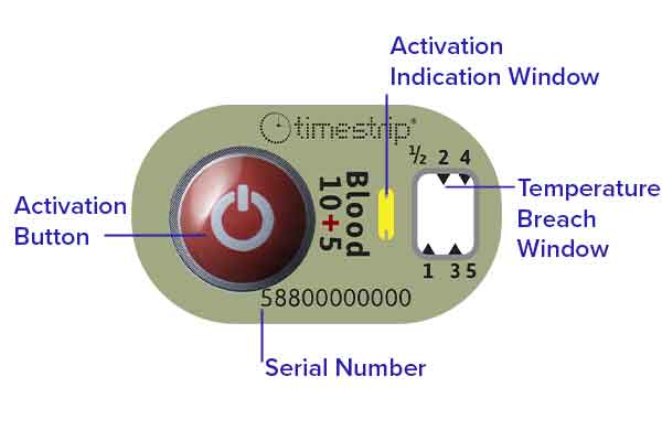 Timestrip® Blood Temp 10+ a single use temperature indicator in a self-adhesive label format. It can be adhered onto blood bags and transported immediately after activation.